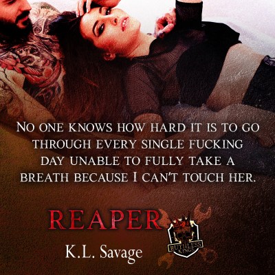 I give this book at 5-star review and look forward to more of the Ruthless Kings. I hope we get to read Tongue’s story along the way. I fell in love with him in this story and want to know more about him. If you like MC stories, or stories of rough and tough men who can be broken by one teenage girl, then you will love Reaper. This story had me laughing and crying but it was so worth it. I loved it!