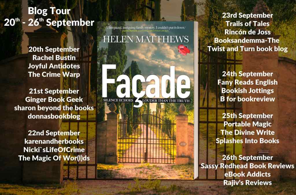 Helen Matthews writes page-turning psychological suspense novels and is fascinated by the darker side of human nature and how a life can change in an instant. Her first novel, suspense thriller After Leaving the Village, won first prize in the opening pages category at Winchester Writers’ Festival, and was followed by Lies Behind the Ruin, domestic noir set in France, published by Hashtag Press. Her third novel Façade will be published by Darkstroke in September 2020.